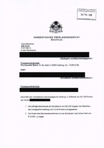 Dementsprechend hat ein von Rasch Rechtsanwälte vertretenes Medienunternehmen einen Unterlassungsbeschluss erwirkt. Nachdem der betreffende Sharehosting-Dienst diesen erhalten hatte, kam es prompt zu zwei Verstößen dagegen. Das Landgericht (LG) Hamburg hatte den Sharehoster daraufhin mit einem Ordnungsgeld im fünfstelligen Bereich belegt (Gz.: 310 O 294/13). Weil der Betreiber des Dienstes der Ansicht war, er habe alles ihm Mögliche getan, um die Verstöße zu verhindern, hat er sich an das OLG Hamburg gewandt, das jedoch ganz anderer Ansicht ist.